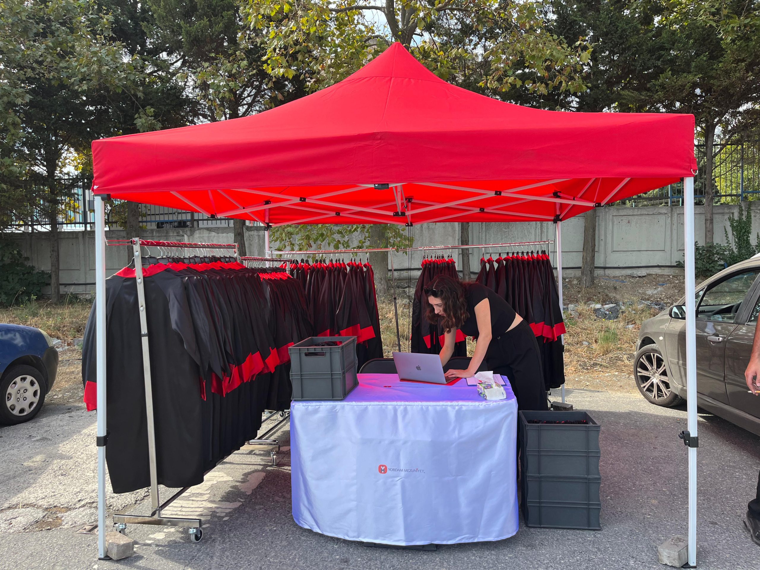 Belirtiğiniz saatte ve organizasyon adresine araçlarımızla cübbelerinizi teslim edelim.